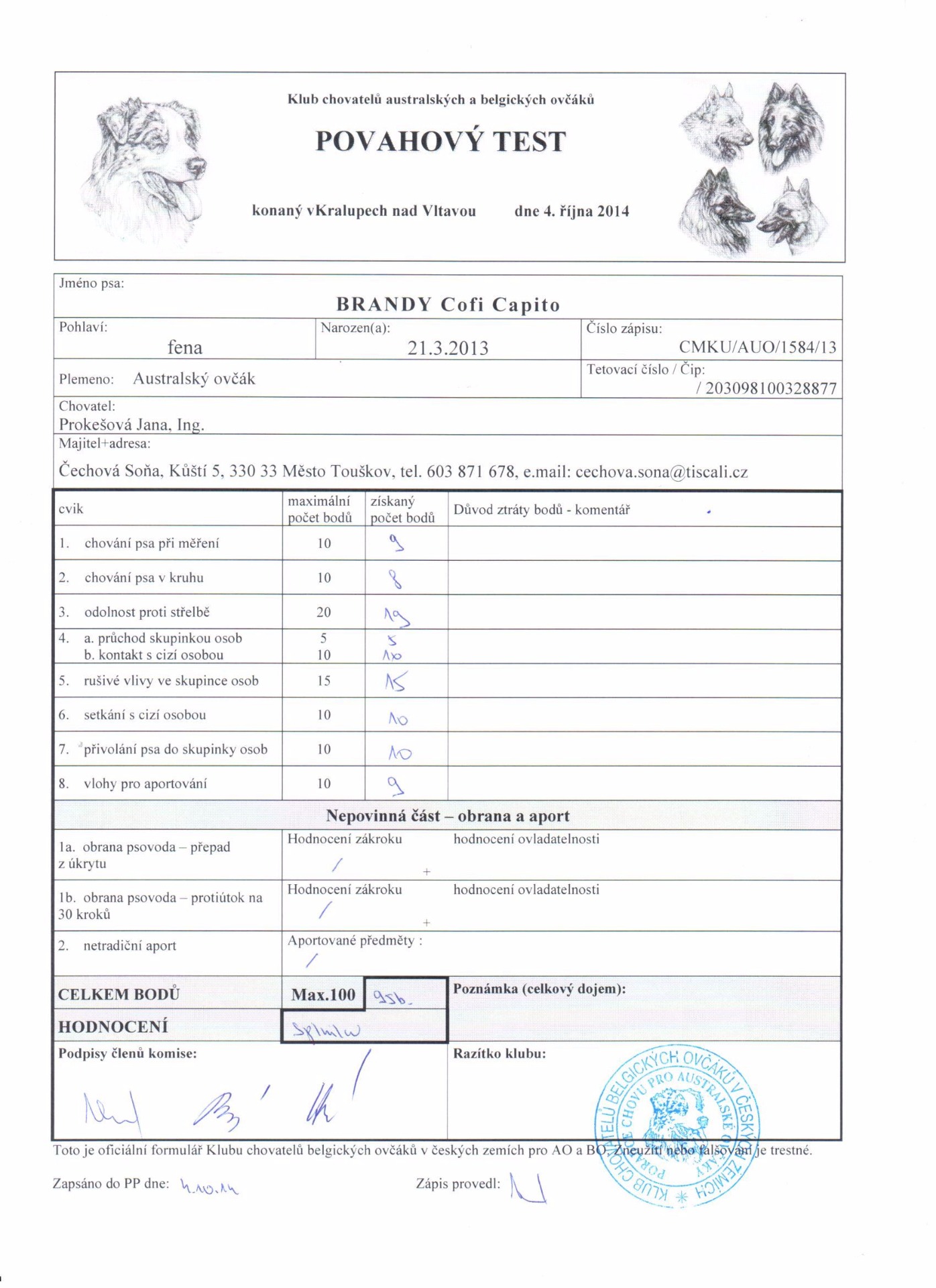 Při povahovém testu dosáhla Arinka úžasných 95 bodů ze 100 !!! A to byla ještě mladá a nevybouřená... dnes bychom to určitě dali za 100